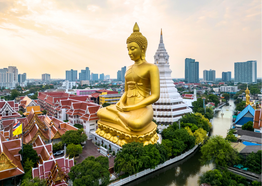 Bangkok, Thailand’s vibrant capital, is famed for ornate shrines and lively streets. Explore its magnificent temples on a City and Temple Tour, including Wat Traimit’s 5.5-ton Golden Buddha and the Reclining Buddha. Travel in a private vehicle and later proceed comfortably by road to Pattaya.